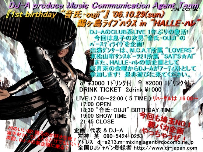 今回はDJ-Aの次男"音氏-OUJI-"のBIRTHDAY LIVEです。