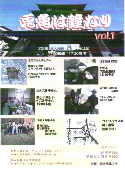 | ホールレンタル・ブッキング共に受付中 新型コロナ感染症対策とお客様へのお願い ※公演中のお食事提供を控えさせていただいております。 →開演前、終演後、休憩中などの時間にご用意いたします。 ※常時マスクの着用をお願いします。 ※大きな声での会話や声援はお控えください。 ※体調不良、発熱、風邪等の症状のある方はご入場をお断りしております。 イベントにつきましてはガイドライン遵守の上、打ち合わせ等を十分に行い開催いたします。 【公演予約方法】 ●ライブハウス鶴ヶ島HALLE 電話予約 049-287-1037 (受付時間12:00〜24:00) メール予約 ●プレイガイドe+ ※対象ライブのみ 【入場システム】 ●ライブ公演におきましては、別途ご入場時1ドリンク¥500を頂戴いたします。※記載のない場合は、この限りではありません。 ●ライブ内容により、全席着席又はオールスタンディング(※一部座席)となりますが、ライブ中もお食事はお楽しみ頂けます。 ●全公演先着入場ですが、公演により整理券配布を行う場合もございます。 ●2020年1/1より店内禁煙です。 ※弊店入口の喫煙コーナーをご利用ください。 ※当スケジュールが最新情報となりますので、ご来店の前に今一度ご確認くださいませ。 またリアルタイムで、FACEBOOK/TWITTERでも情報公開しておりますので、左上部のHALLE-WEBよりご利用ください。 *** 2003-2010年5月 スケジュール・アーカイブ ※過去データベース一部消失の為、現在随時復旧中です。 |