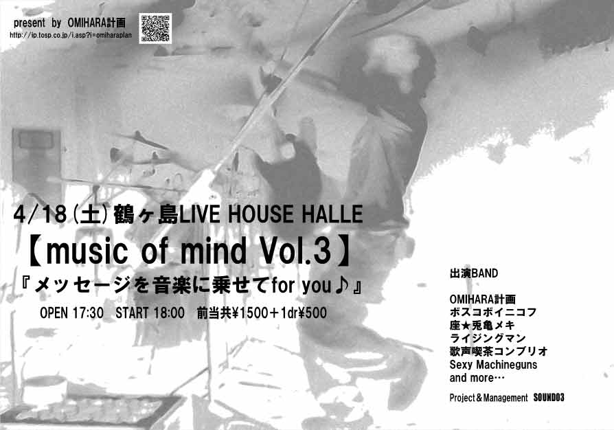 | ホールレンタル・ブッキング共に受付中 新型コロナ感染症対策とお客様へのお願い ※公演中のお食事提供を控えさせていただいております。 →開演前、終演後、休憩中などの時間にご用意いたします。 ※常時マスクの着用をお願いします。 ※大きな声での会話や声援はお控えください。 ※体調不良、発熱、風邪等の症状のある方はご入場をお断りしております。 イベントにつきましてはガイドライン遵守の上、打ち合わせ等を十分に行い開催いたします。 【公演予約方法】 ●ライブハウス鶴ヶ島HALLE 電話予約 049-287-1037 (受付時間12:00〜24:00) メール予約 ●プレイガイドe+ ※対象ライブのみ 【入場システム】 ●ライブ公演におきましては、別途ご入場時1ドリンク¥500を頂戴いたします。※記載のない場合は、この限りではありません。 ●ライブ内容により、全席着席又はオールスタンディング(※一部座席)となりますが、ライブ中もお食事はお楽しみ頂けます。 ●全公演先着入場ですが、公演により整理券配布を行う場合もございます。 ●2020年1/1より店内禁煙です。 ※弊店入口の喫煙コーナーをご利用ください。 ※当スケジュールが最新情報となりますので、ご来店の前に今一度ご確認くださいませ。 またリアルタイムで、FACEBOOK/TWITTERでも情報公開しておりますので、左上部のHALLE-WEBよりご利用ください。 *** 2003-2010年5月 スケジュール・アーカイブ ※過去データベース一部消失の為、現在随時復旧中です。 |