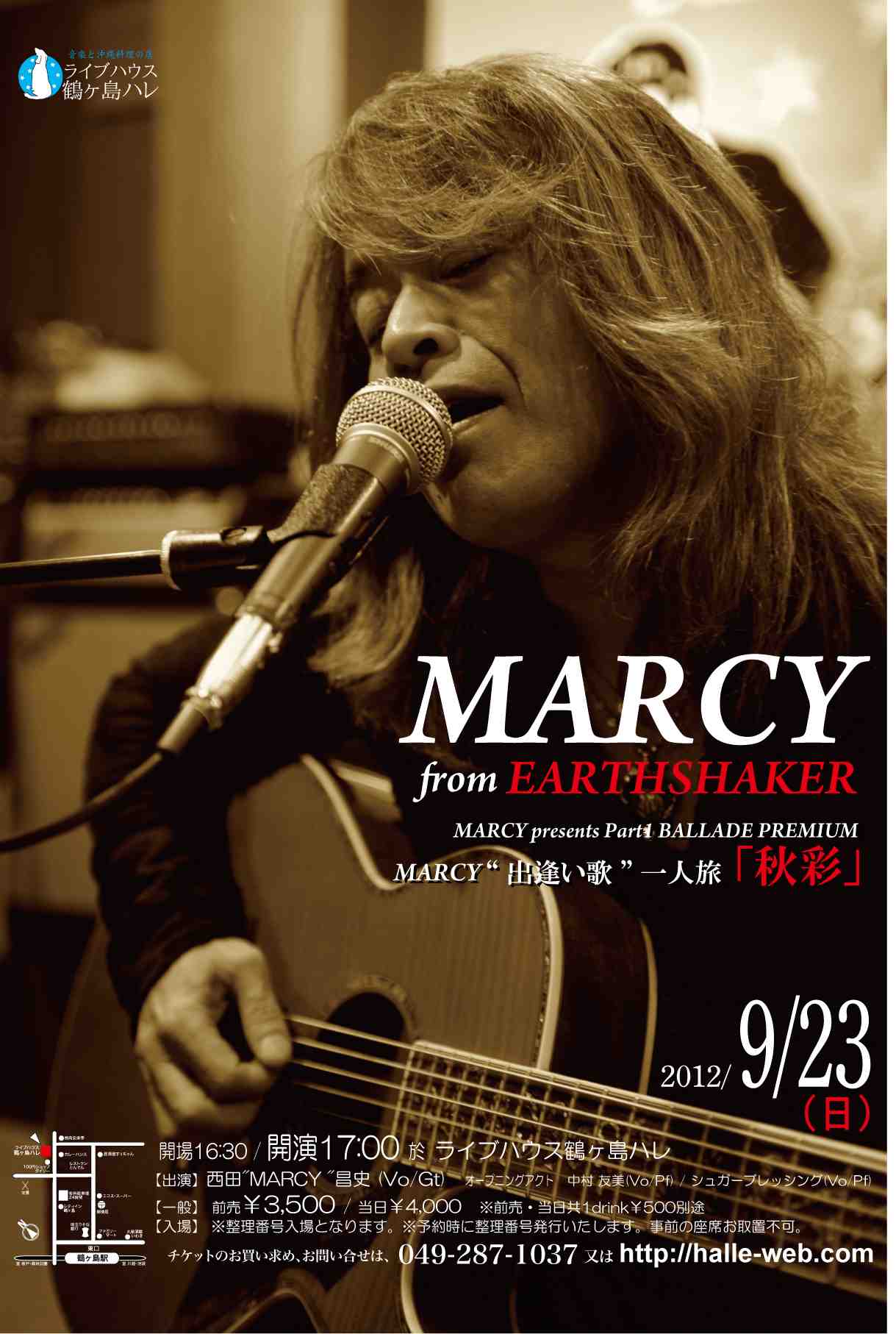 | ホールレンタル・ブッキング共に受付中 新型コロナ感染症対策とお客様へのお願い ※公演中のお食事提供を控えさせていただいております。 →開演前、終演後、休憩中などの時間にご用意いたします。 ※常時マスクの着用をお願いします。 ※大きな声での会話や声援はお控えください。 ※体調不良、発熱、風邪等の症状のある方はご入場をお断りしております。 イベントにつきましてはガイドライン遵守の上、打ち合わせ等を十分に行い開催いたします。 【公演予約方法】 ●ライブハウス鶴ヶ島HALLE 電話予約 049-287-1037 (受付時間12:00〜24:00) メール予約 ●プレイガイドe+ ※対象ライブのみ 【入場システム】 ●ライブ公演におきましては、別途ご入場時1ドリンク¥500を頂戴いたします。※記載のない場合は、この限りではありません。 ●ライブ内容により、全席着席又はオールスタンディング(※一部座席)となりますが、ライブ中もお食事はお楽しみ頂けます。 ●全公演先着入場ですが、公演により整理券配布を行う場合もございます。 ●2020年1/1より店内禁煙です。 ※弊店入口の喫煙コーナーをご利用ください。 ※当スケジュールが最新情報となりますので、ご来店の前に今一度ご確認くださいませ。 またリアルタイムで、FACEBOOK/TWITTERでも情報公開しておりますので、左上部のHALLE-WEBよりご利用ください。 *** 2003-2010年5月 スケジュール・アーカイブ ※過去データベース一部消失の為、現在随時復旧中です。 |
